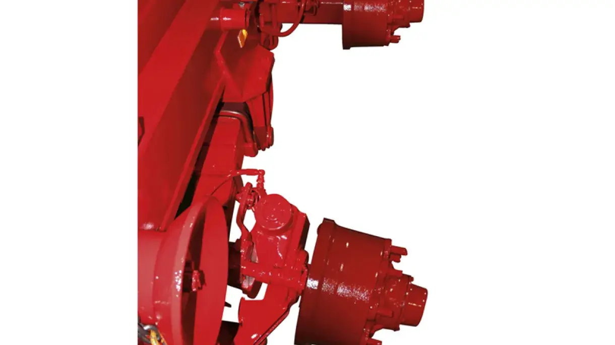 Nachlauf- oder Zwangslenkachse können an gefederten BIGAB-Einheiten angebracht werden. Dadurch wird sowohl die Abnutzung der Reifen vermindert, als auch der Boden geschont. Außerdem wird die nötige Zugkraft geringer. Hier ist eine Nachlauflenkachse abgebildet.