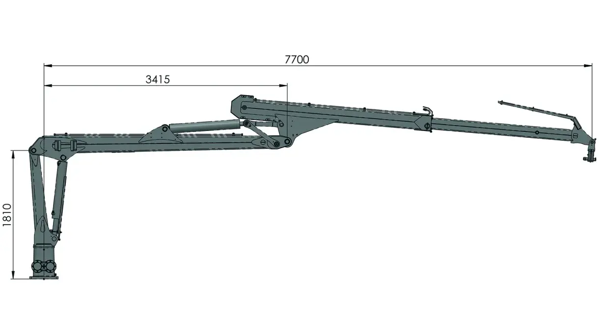 Kranen har en räckvidd på 7,7 m och ett utskjut på 1.97 m. Kranen lyfter 790 kg på full räckvidd exkl. grip, rotator och länk.
